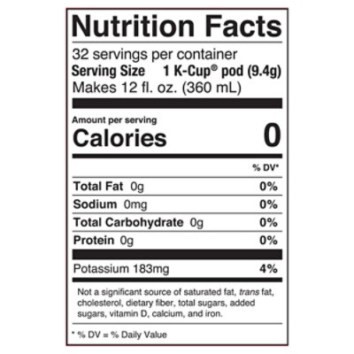 Nutrition Facts for Decaf Coffee - Get a bar chart of the top 10 nutrients and click to see an expanded list of over 151 nutrients including amino acids. Coffee creamer often contains potassium. This is considered a low potassium food.